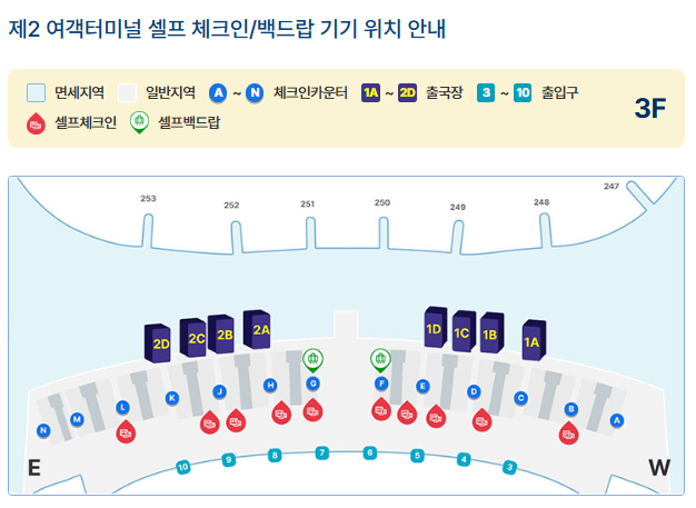 | 대한항공 | F 카운터 05:30~20:00 (항공기 출발 1시간 전까지) | E 카운터에서 수속 진행 (이용제한 승객 대한항공 홈페이지 참고) |
